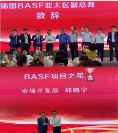 合聚在13年的發(fā)展過程中,始終聚焦高性能材料領(lǐng)域,已經(jīng)從中西部區(qū)域型企業(yè)發(fā)展成為全國性企業(yè)。在合聚的發(fā)展過程中離不開廣大客戶和供應(yīng)商的支持,適逢橡塑展,合聚于4月14日晚在深圳天安云谷國際會(huì)議廳成功舉辦了一場“攜手共進(jìn)”客戶答謝晚宴,邀請(qǐng)到了120名合聚重要戰(zhàn)略合作伙伴參與,德國巴斯夫亞太區(qū)特性材料交通運(yùn)輸事業(yè)部全球副總裁龍志強(qiáng)攜團(tuán)隊(duì)?wèi)?yīng)邀出席晚宴并為晚會(huì)致辭,龍總致辭中說合聚一直是巴斯夫信賴的合作伙伴,并充分肯定了合聚集團(tuán)為巴斯夫產(chǎn)品和應(yīng)用推廣做出的努力和近年來取得的成績。他希望雙方能夠更加緊密合作、攜手共進(jìn),創(chuàng)造更大的輝煌。隨后,龍志強(qiáng)為合聚集團(tuán)在BASF產(chǎn)品線項(xiàng)目開發(fā)中表現(xiàn)優(yōu)秀的員工邱鵬宇頒發(fā)了“BASF項(xiàng)目之星”榮譽(yù)獎(jiǎng)杯,將整個(gè)晚宴氛圍推上了高潮。